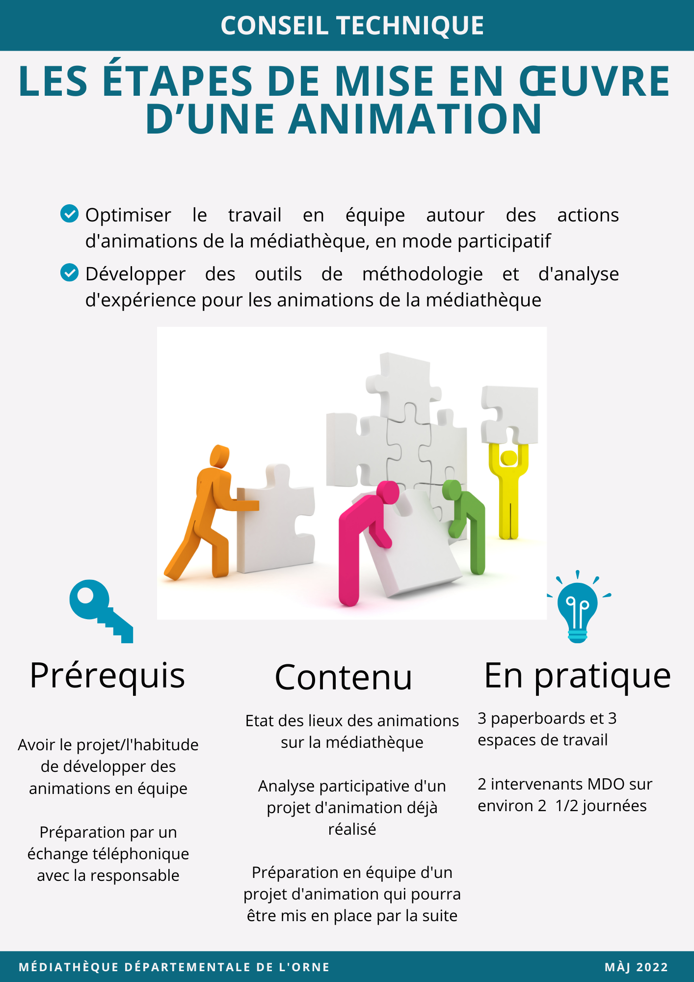- Optimiser le travail en équipe autour des actions d'animations de la médiathèque, en mode participatif