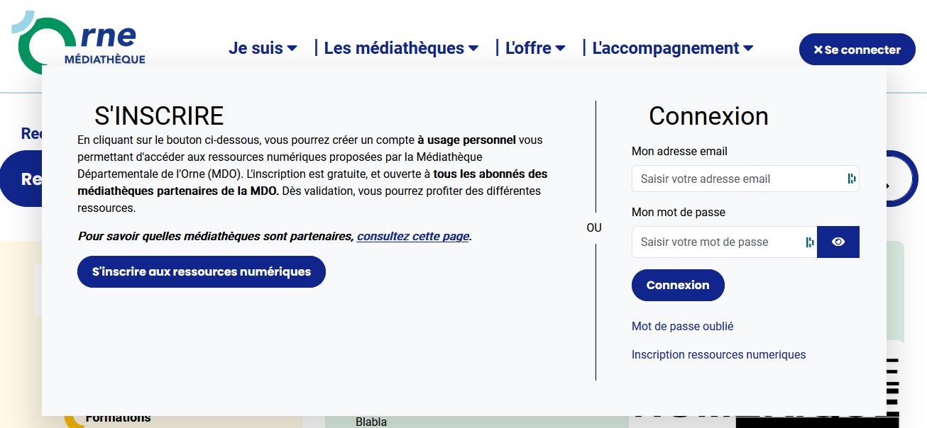En étant connecté, il est possible de réserver des documents ou outils d'animation, consulter ses prêts et réservations, se constituer des listes, gérer ses abonnés aux ressources numériques.